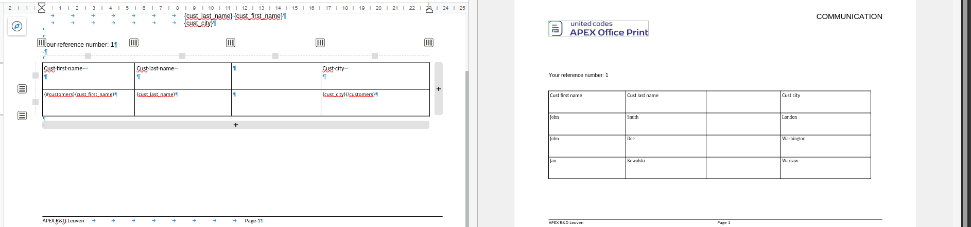 ORA-20000: The AOP Server can not process your request. RequestID: 4b501242-aa9b-43c6-8df4-c6c5fb9e3e36 Please have a look at the following errors: The tag beginning with "{/cust_cit" is unclosed The tag "customers" is closed by the tag "cust_city == 'London'" The loop with tag "customers" is unopened The scope parser for the tag "cust_first_name\cell_background_color:#FFF2AC" failed to compile The scope parser for the tag “cust_last_name”