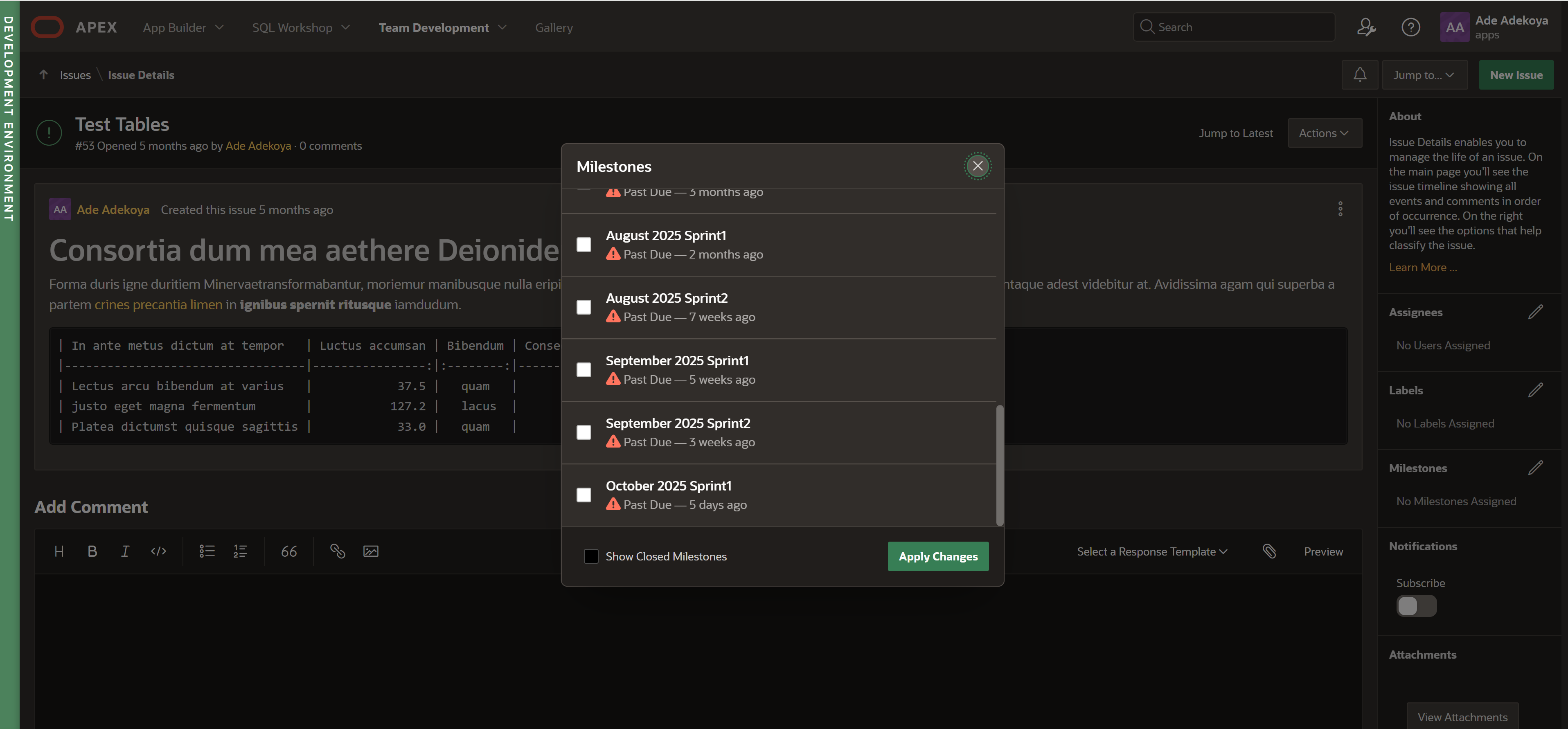 This is an problem with Oracle APEX Team Development Assign Milestones to an Issue limitation.