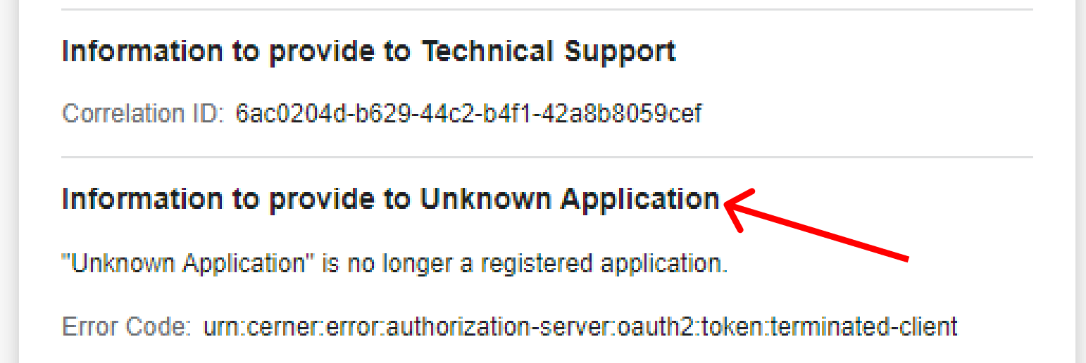 Step 6: After opening the error_uri link, I receive an "Unknown Application" error.
