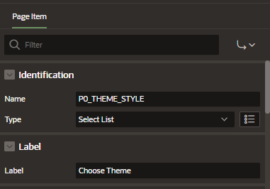 Created a select list item P0_THEME_STYLE on the Global Page (Page 0).