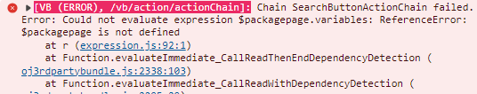 I'm wondering why I'm getting below error for one of my button action chain event in Visual Builder Studio extension. I checked my code I'm not using anywhere $packagepage.variables.