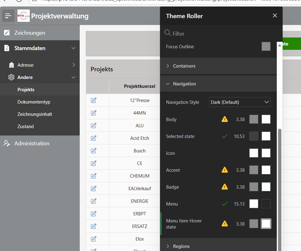 I want the colour to be a bit lighter when an item is clicked in the menu or on hover.