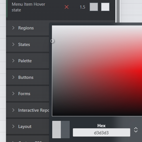 I have tried changing the Menu Item Hover state to a lighter colour but it does not change or I get an error