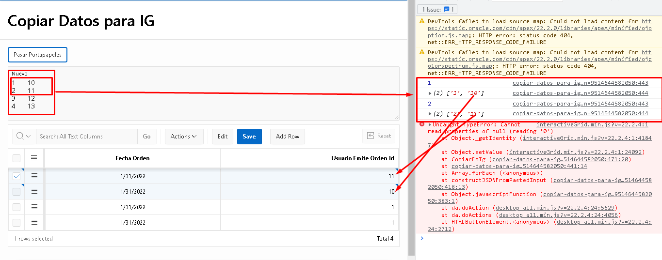 Hola, una solicitud de mis clientes es que ellos puedan copiar y pegar desde Excel a una Cuadrícula Interactiva, sé que tal función no existe actualmente, sin embargo, he investigado como copiar datos de Excel y pegar en una tabla HTML con JS y he adaptado dicho código a una IG pero no logro copiar todos los datos en la columna 2 del IG.