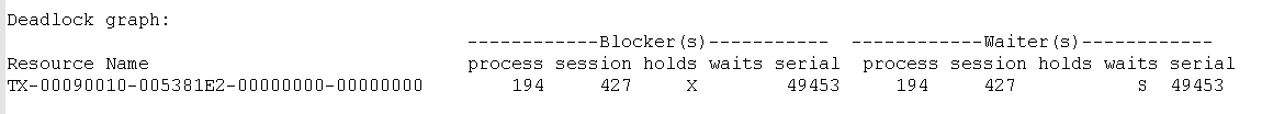 In our production DB, deadlock was detected in database alert log/trace file. The trace file shows that the same session, process and serial # are locking each other out . The call stack and deadlock graph are shown below: