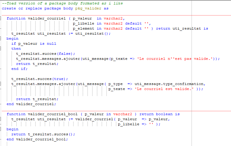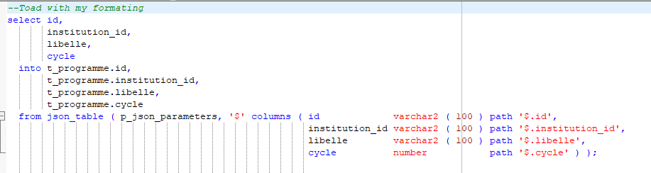 Right now I'm working with Toad that got a « decent » PL/SQL. Toad coul improve it a lot but still it's decent. Then I'm trying to switch my PL/SQL developing to VSCode and the principal thing that is problematic is to find any good formater.