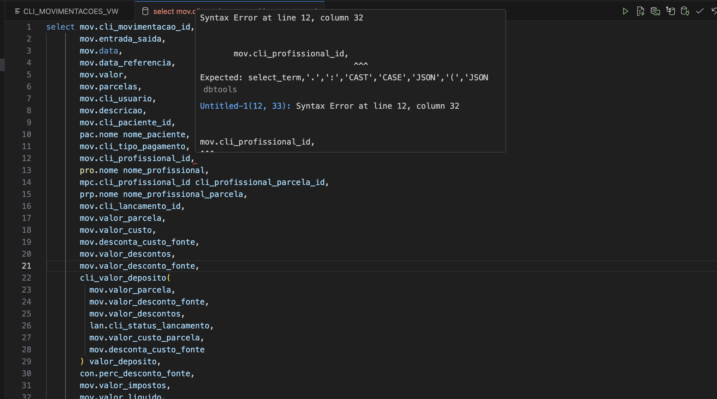 I have this strange situation: the same query brings me different result sets in vscode vs legacy sql developer. In vs code, it seems to complain of something I don't understand: