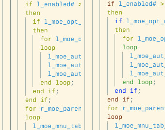 Hi, It would be neat to have sort of a rainbow-highlighting on if-statements and begin/end blocks, see the attached picture. Or at least that vscode can recognize the keywords and the code in between as a separately highlight-able textmate ‘scope’-thingy. This is especially useful with nested code.