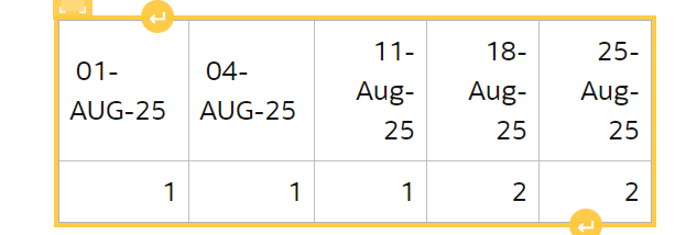 When I check in the developer page I could see 18-Aug-25 column . But we don't want 18-Aug-25 when i select the ID 2 . How can I change the column names and columns dynamically?