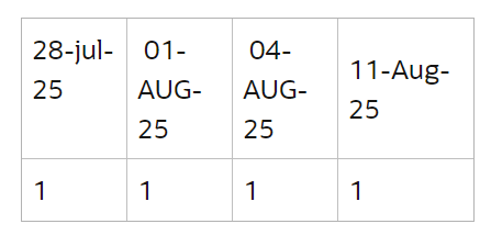 ORA-00904: "D"."18-Aug-25": invalid identifier .