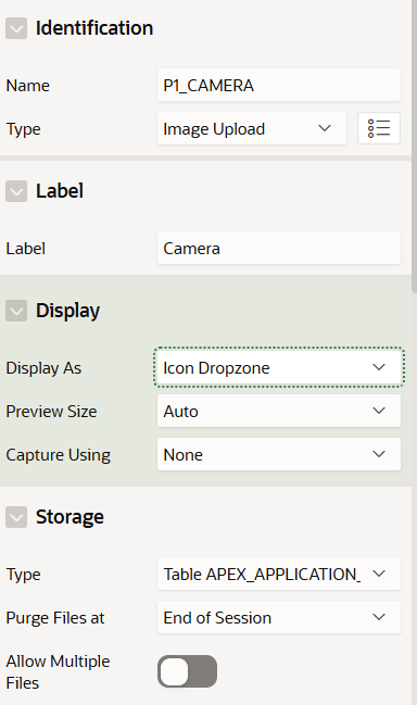 It takes the photo but I thought it would be automatically saved to the apex_application_temp_files table