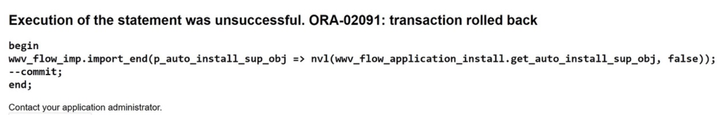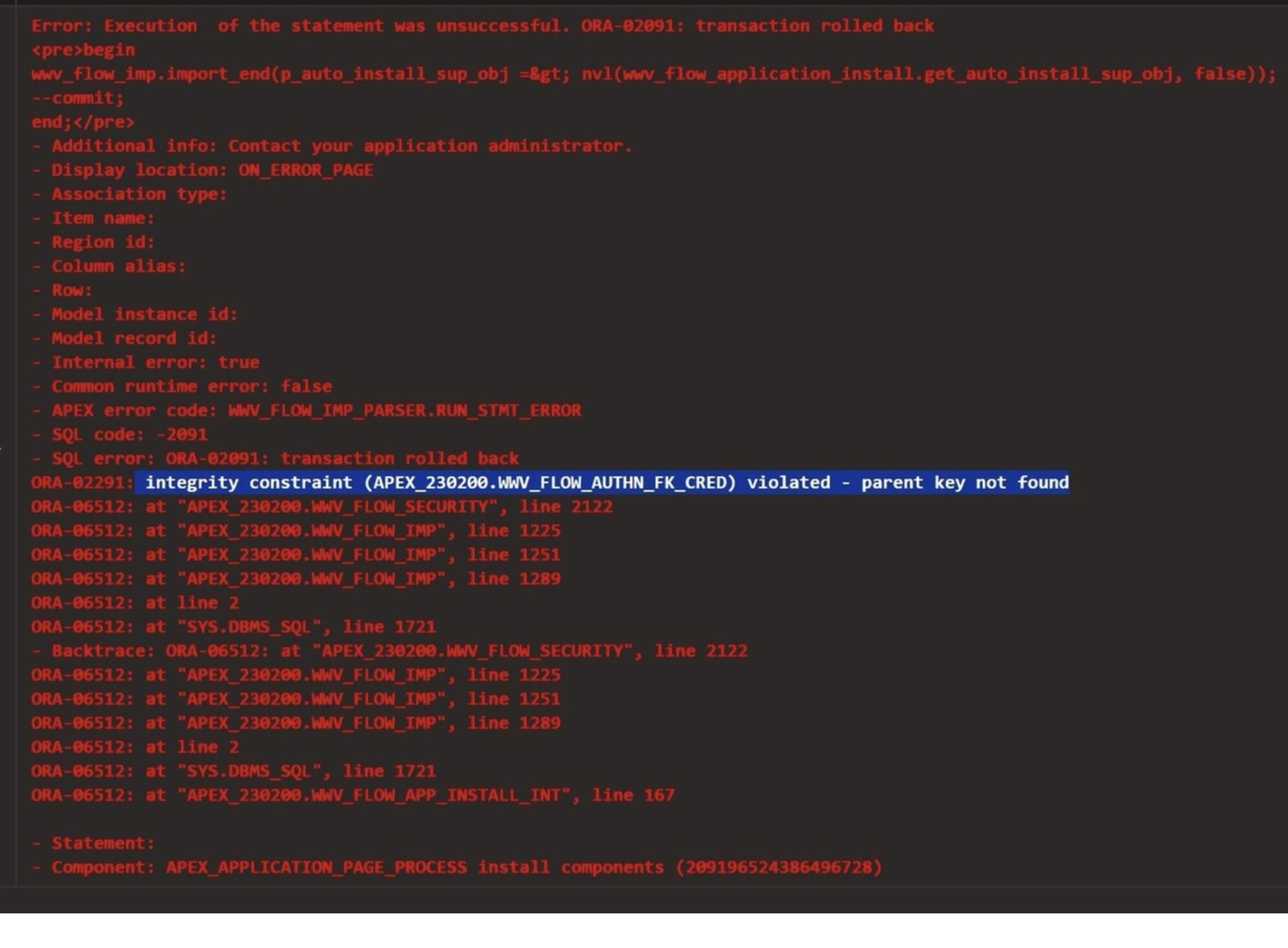 if you have web credentials in your WS and just want to import the Authentication Schema for an app into this WS we get the following error. APEX 23.2.3