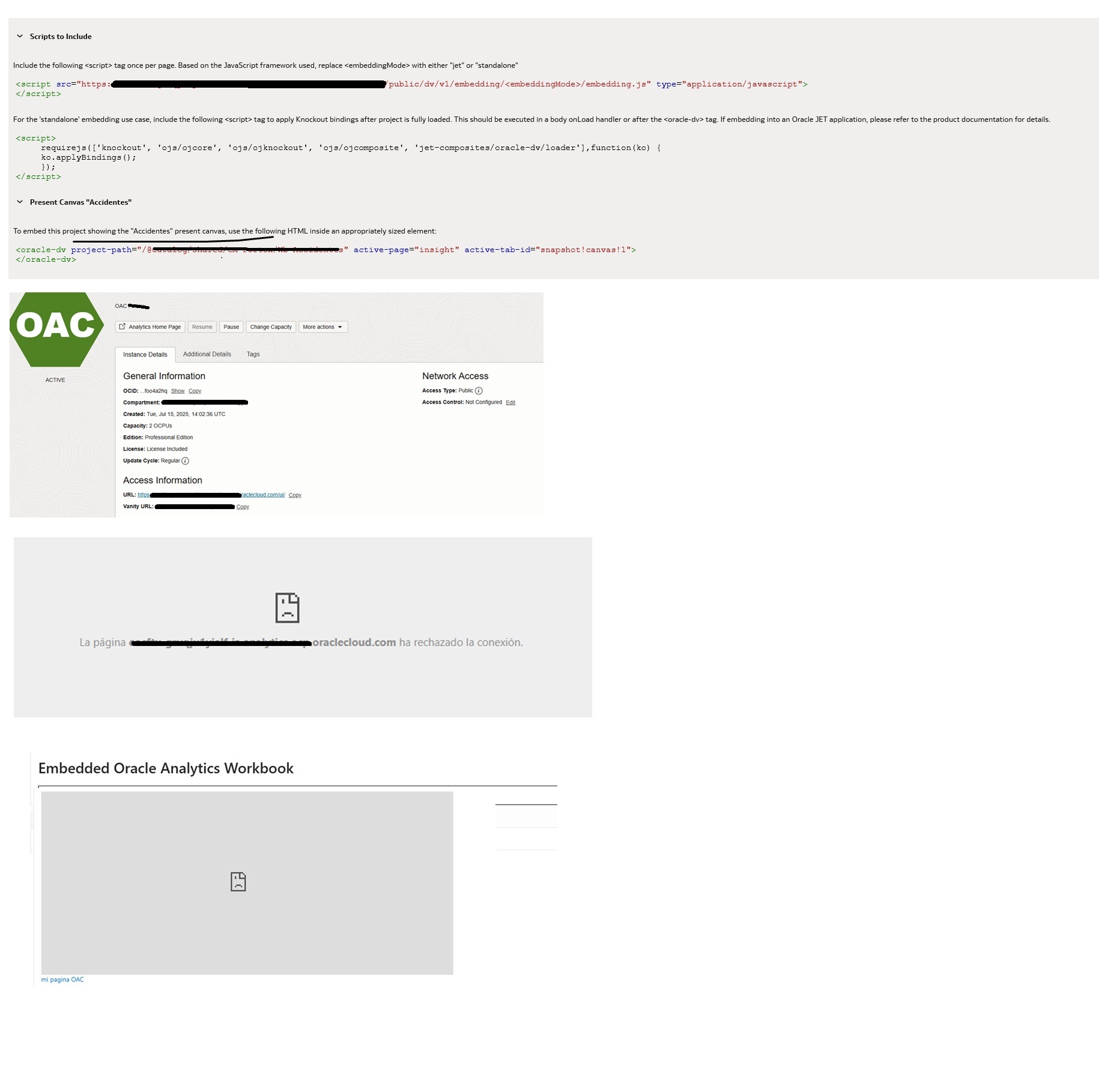 Actualmente tengo una instancia de OAC en OCi y requiero dentro de una pagina Apex embeber ya sea el lienzo o el grafico , enviando un parámetro para filtrar la información del mismo y que sea autologin.