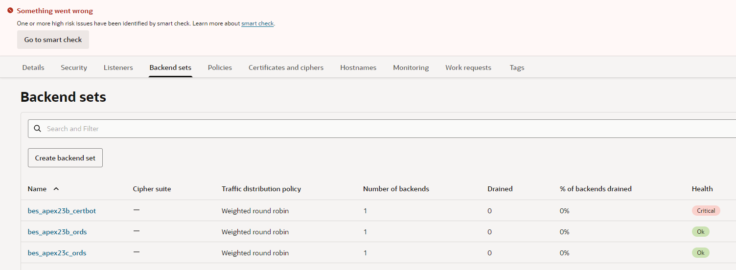 but summary of backend sets here OK