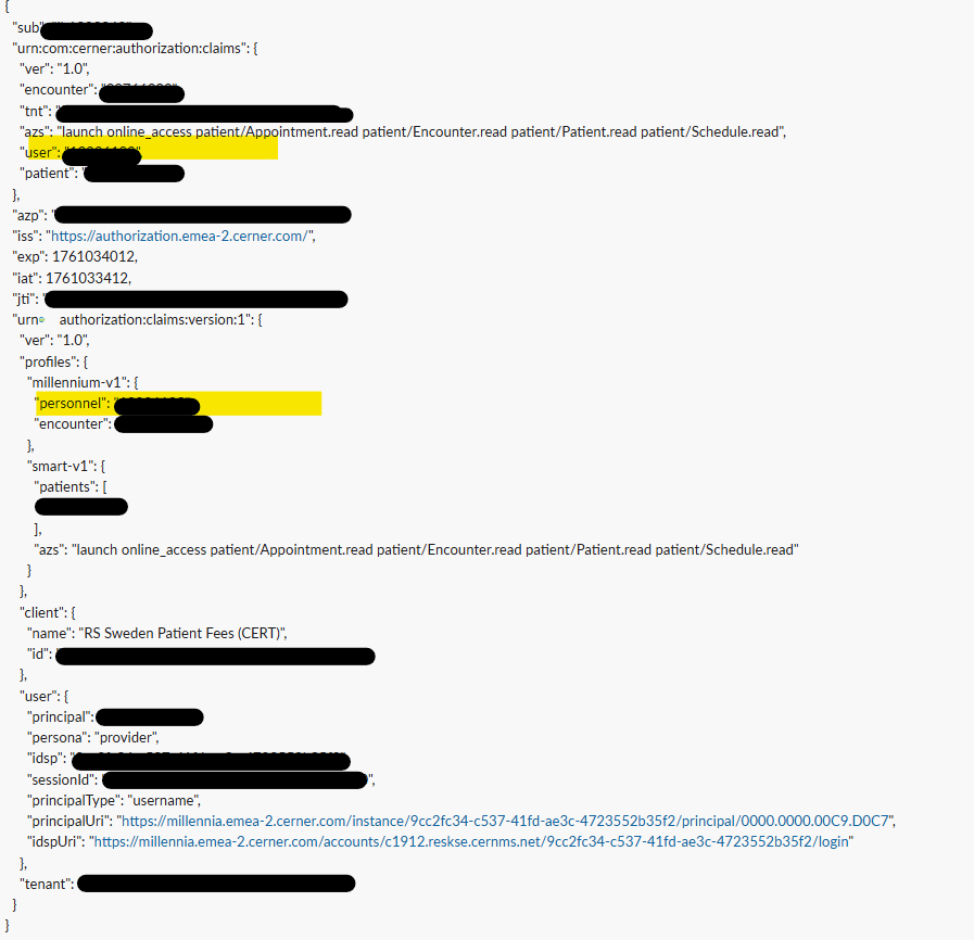 We want to extract the logged in Millennium user's id from the access token. But we are unsure which part of the access token we should extract from?