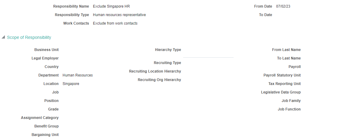If I then go ahead and add a further AOR to try and prevent access to Location: Singapore / Department: Human Resources: