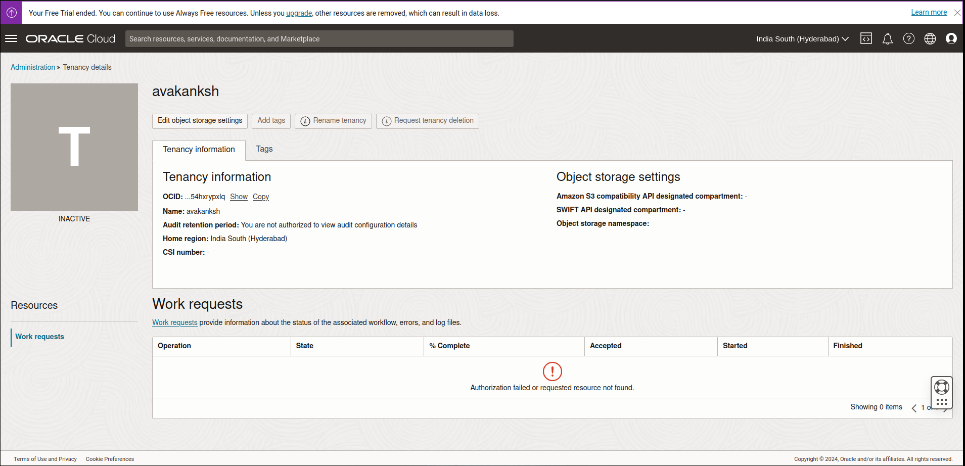 my tenancy got inactive no i am not able to use any of the free instances now. can anyone help me with the solution for this issue, there are many people who are facing the same issue, i didn't happen to find any solution for it. I hope atleast this time i might get any response for the fix .