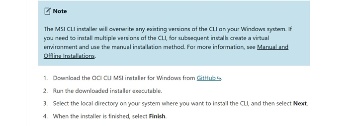 Installed OCI CLI using the official Windows MSI installer