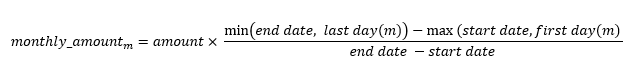 amount * (least(end_date, last_day(add_months(month, 1))) - add_months(month, 1)) /