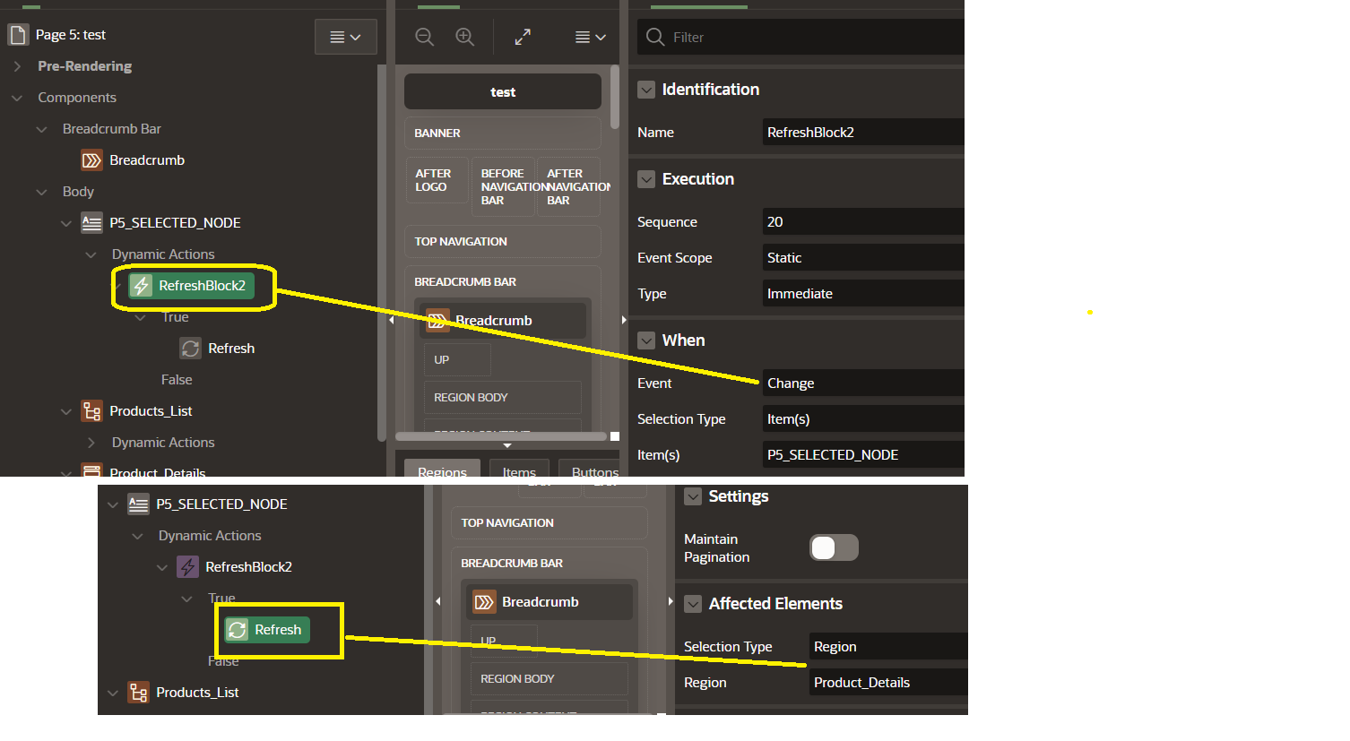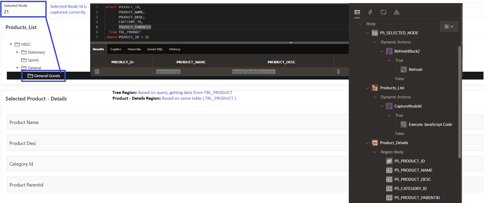 First region (Products_List) have TREE ( which displays products ), in second region (Product_Details) I want to display details of selected PRODUCT from TREE.