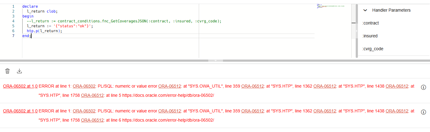 In ORDS 20.4 I have simple plsql proces which returns json as expected.