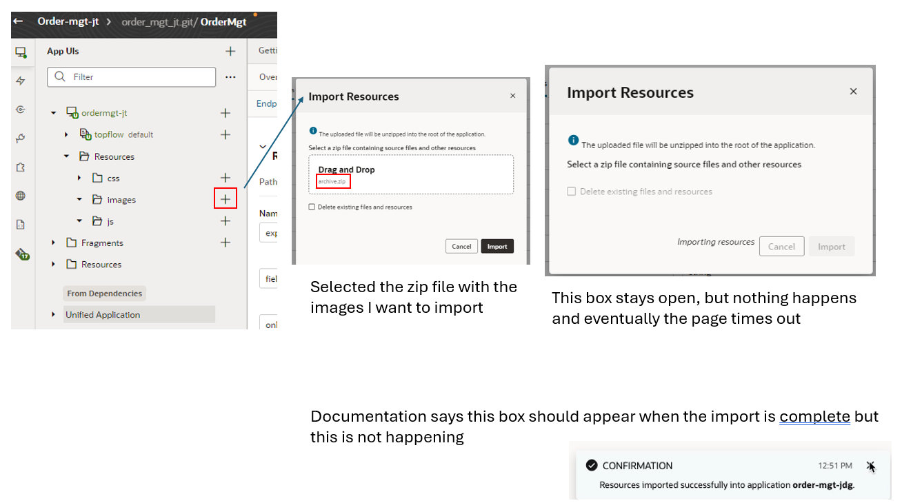 I am trying to import a zip file to my application under resources > Images but nothing happens.