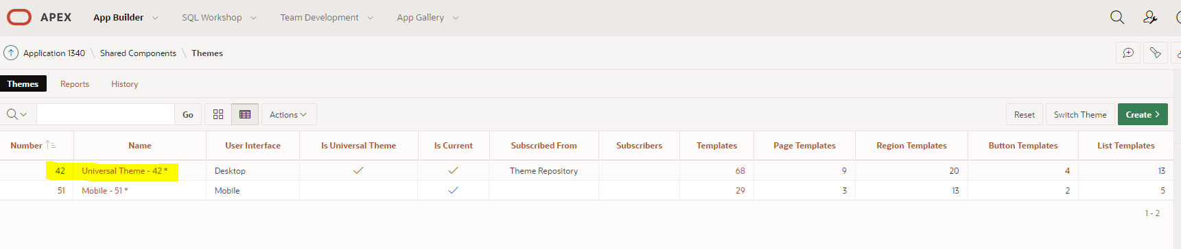 Our team has 2 APEX applications using Universal Theme 42 1.1 and the other using 1.5