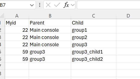 insert into mytable values(22,'Main Console',null); -- 22 is parent of all