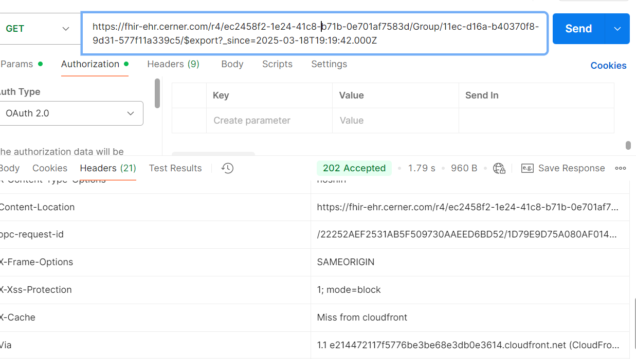 parameter when calling the Bulk Export API with a group ID. However, I am still receiving all resources in the response. It appears that the since