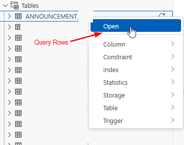 For example, you might have another option when you right-click a table, named “Query Rows” below “Open”: