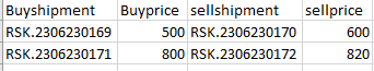 The outcome is that we want the cost of the buyshipment with the buyshipment number and the cost of the sellshipment with the sellshipment number.