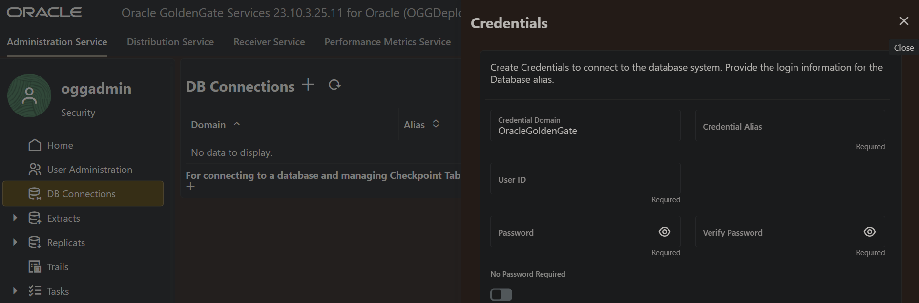 Unable to configure the DB Credentials when using Goldengate using docker container.