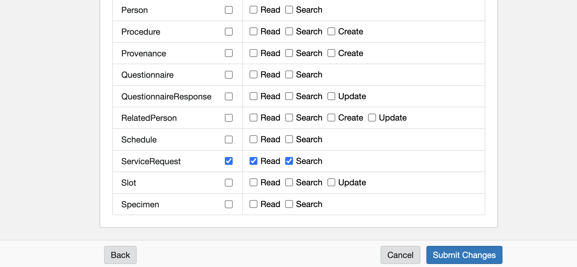 There is no option to enable Update as a scope for ServiceRequest meaning we have no way to update the test code on the ServiceRequest.